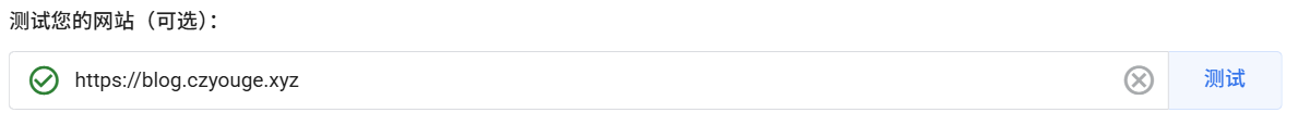 接下来,在「测试您的网站(可选):」中输入你的博客地址,点击测试,查看结果。